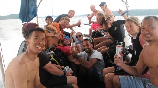 The challenge was thrown down by Dany the Barefoot dive boat driver and Simon accepted, the prize....the most sort after item on the island....a cold case of beer!!