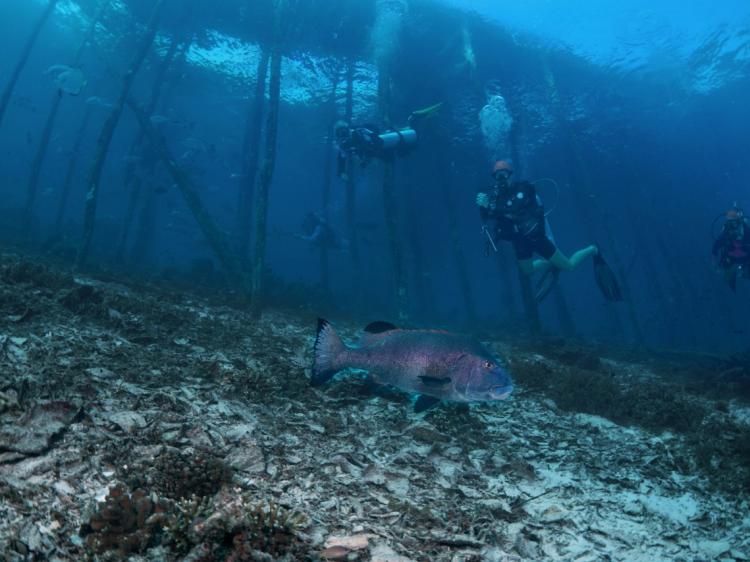 Diving under Arborek jetty